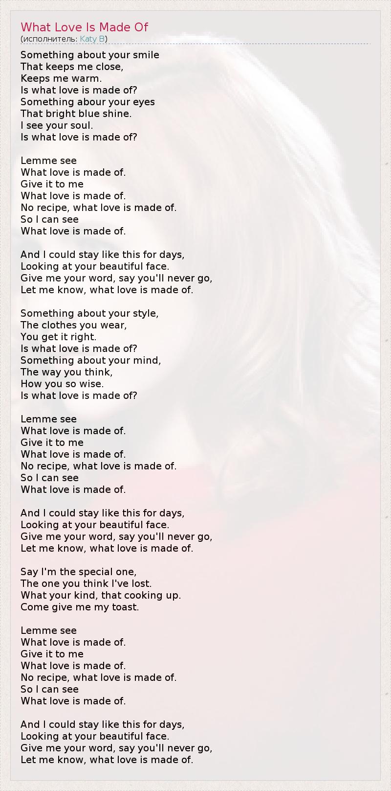 ГлавнаяИсполнителиKaty BWhat Love Is Made Of