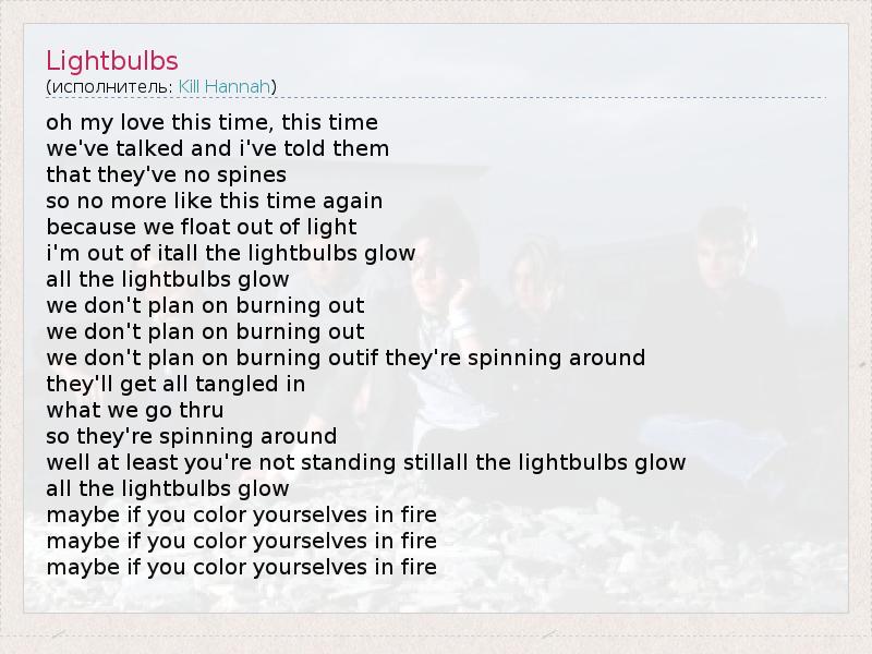 А как ты думаешь, о чем песня "Lightbulbs" ?