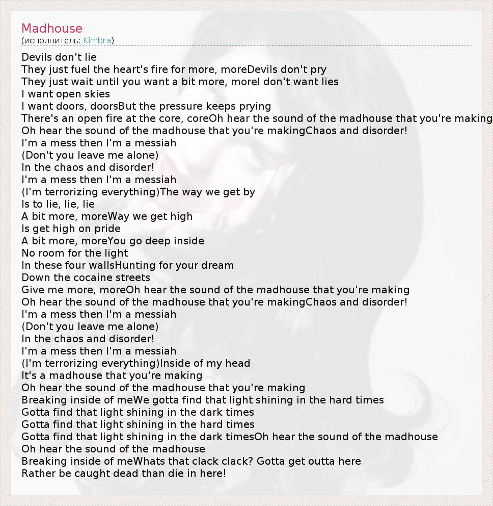 Give me more, moreOh hear the sound of the madhouse that you're making