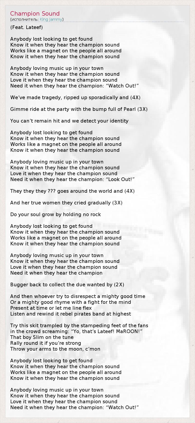 А как ты думаешь, о чем песня "Champion Sound" ?