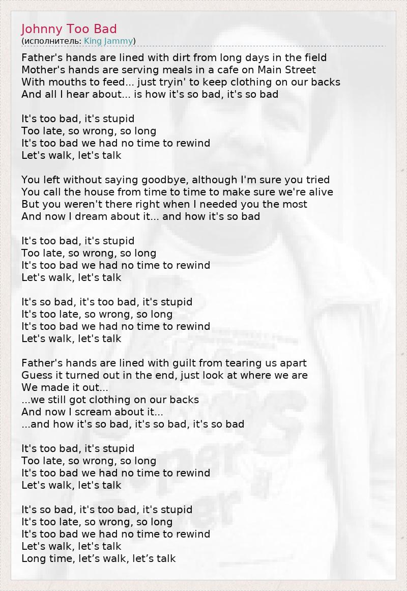 А как ты думаешь, о чем песня "Johnny Too Bad" ?