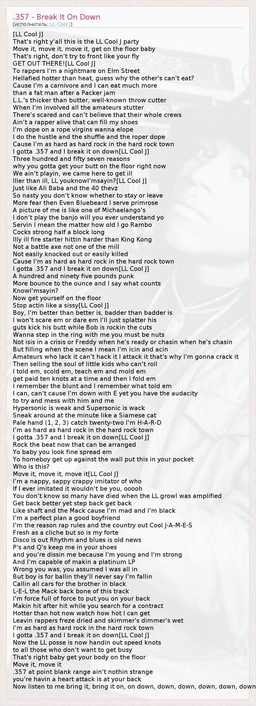 ГлавнаяИсполнителиLL Cool J.357 - Break It On Down