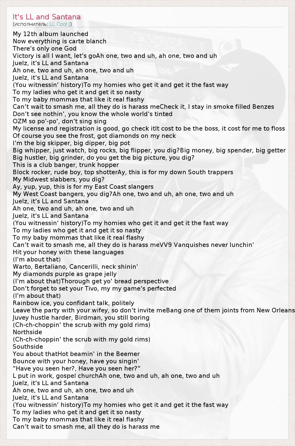 А как ты думаешь, о чем песня "It's LL and Santana" ?