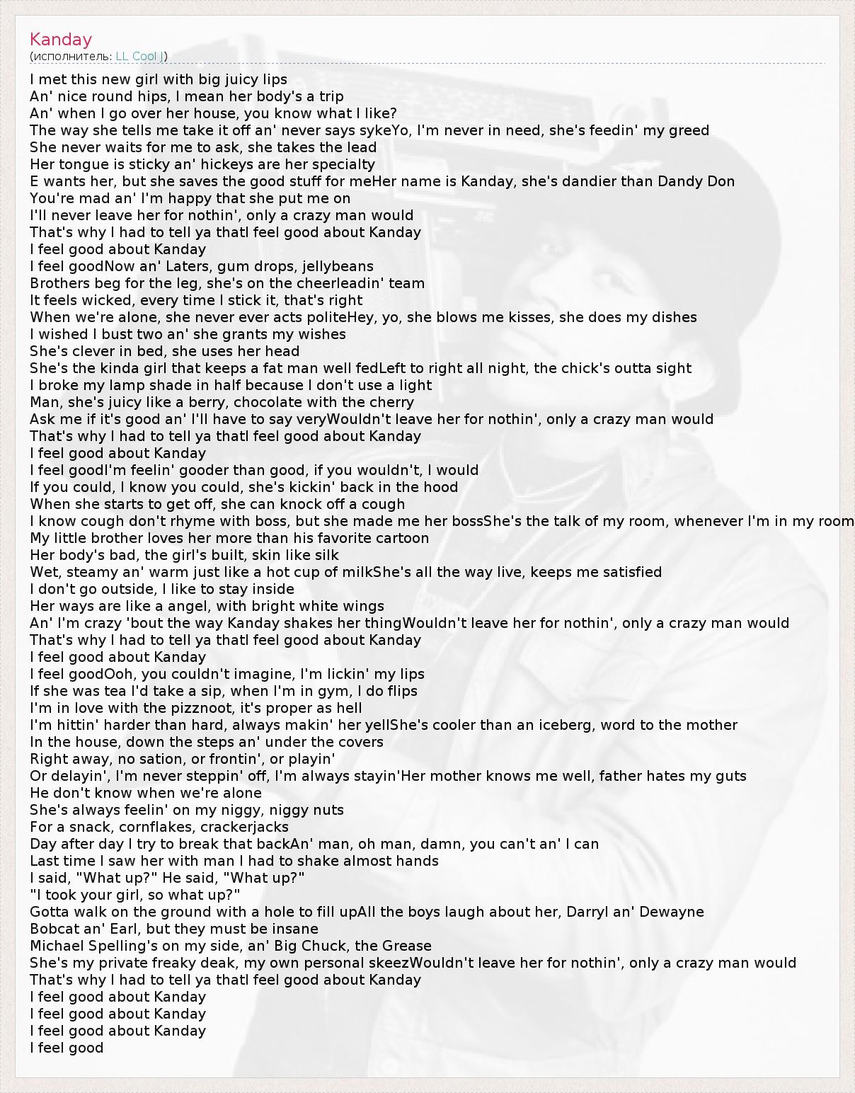 An' I'm crazy 'bout the way Kanday shakes her thingWouldn't leave her for nothin', only a crazy man would