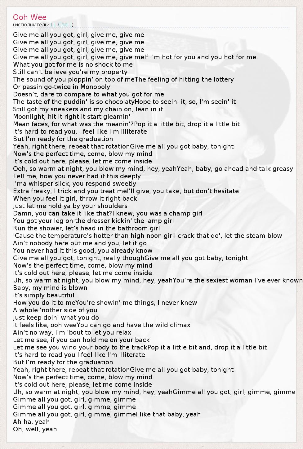 Uh, so warm at night, you blow my mind, hey, yeahGimme all you got, girl, gimme, gimme