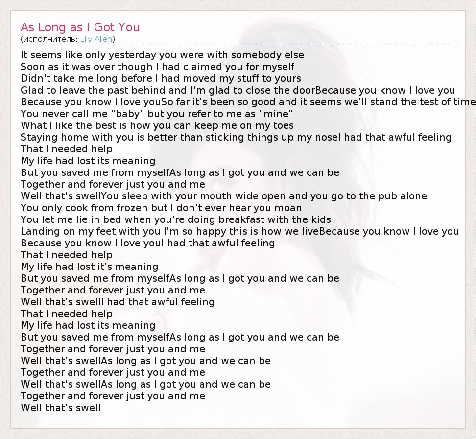 А как ты думаешь, о чем песня "As Long as I Got You" ?
