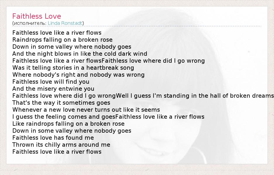 А как ты думаешь, о чем песня "Faithless Love" ?