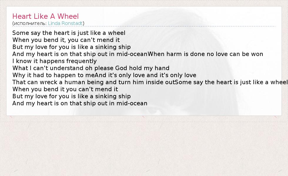А как ты думаешь, о чем песня "Heart Like A Wheel" ?