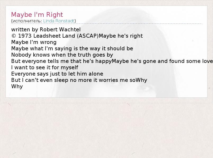 А как ты думаешь, о чем песня "Maybe I'm Right" ?