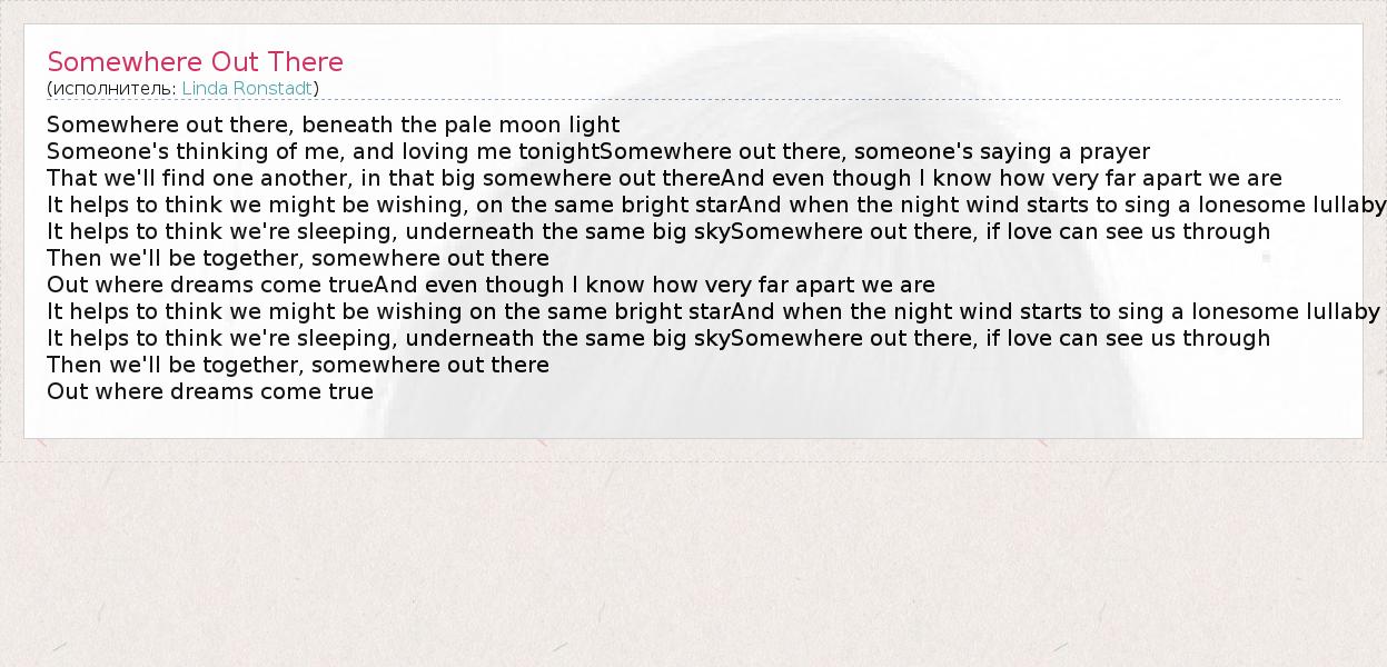 А как ты думаешь, о чем песня "Somewhere Out There" ?