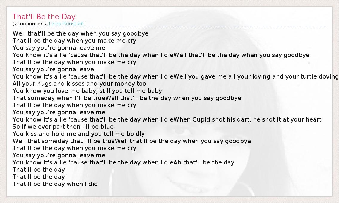 А как ты думаешь, о чем песня "That'll Be the Day" ?