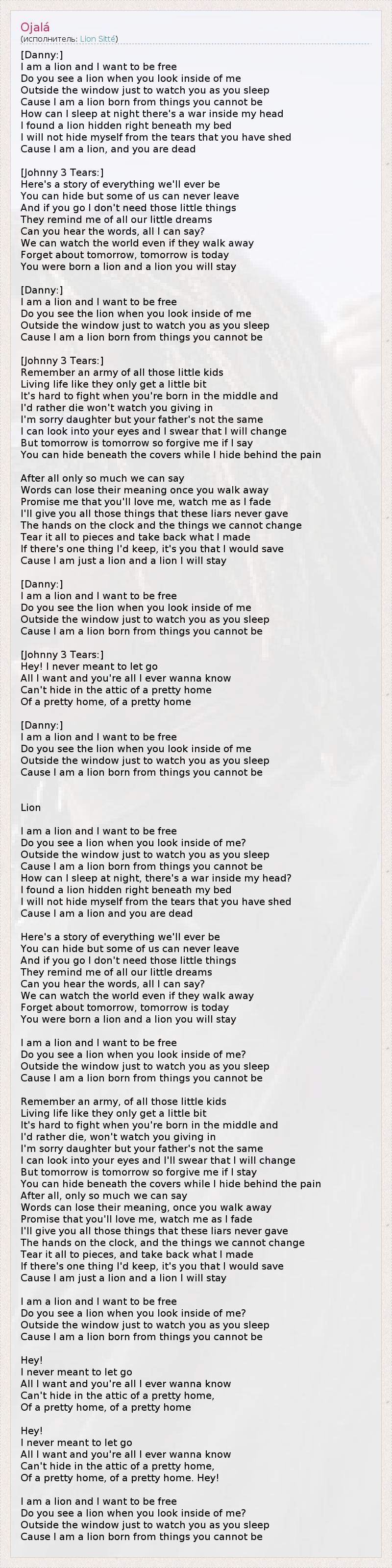Cause I am just a lion and a lion I will stay