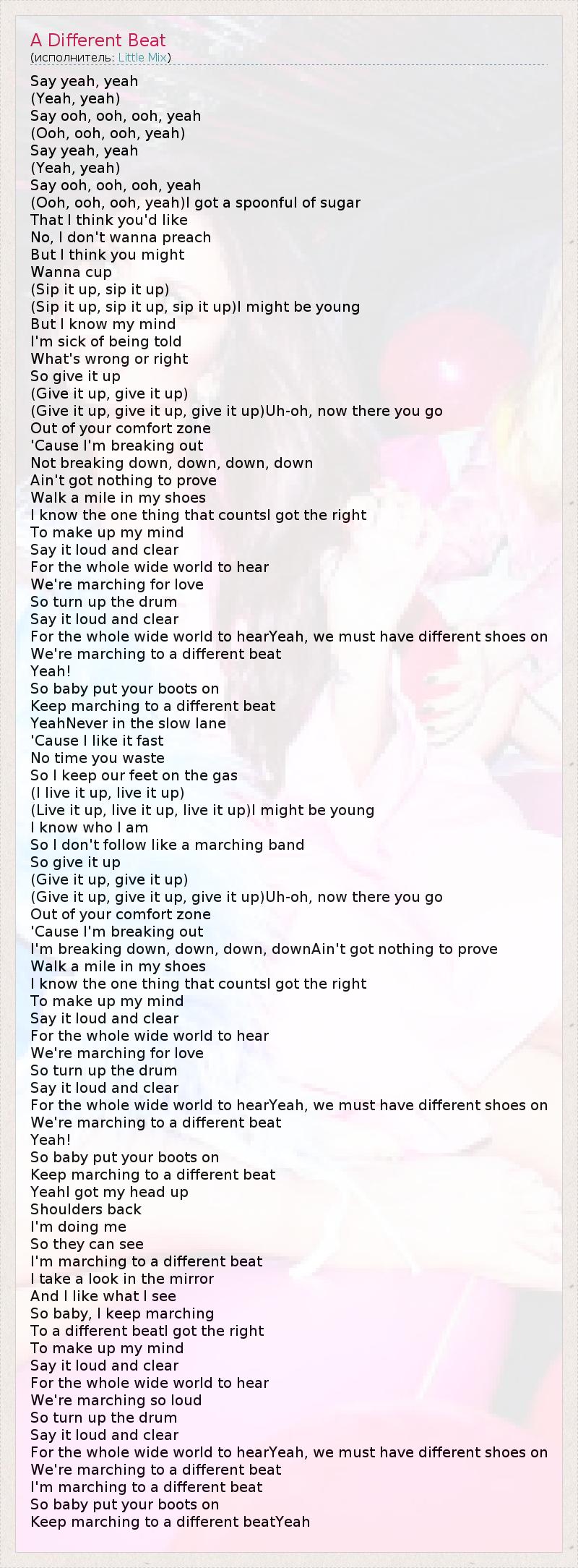 А как ты думаешь, о чем песня "A Different Beat" ?
