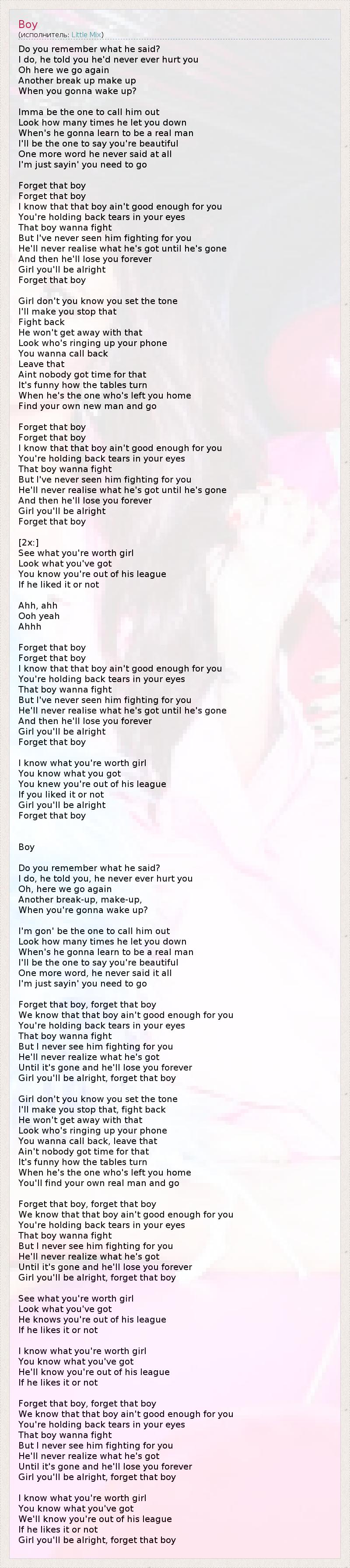 А как ты думаешь, о чем песня "Boy" ?