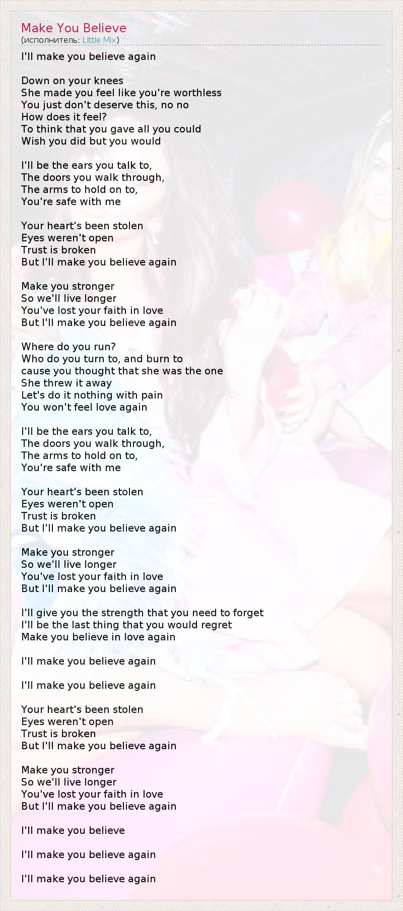 А как ты думаешь, о чем песня "Make You Believe" ?
