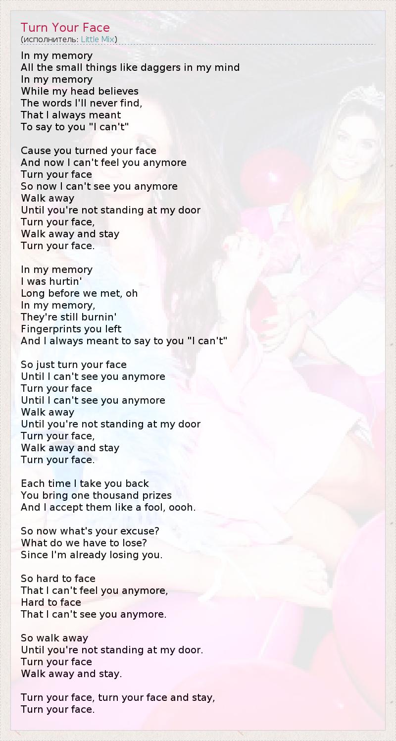 А как ты думаешь, о чем песня "Turn Your Face" ?