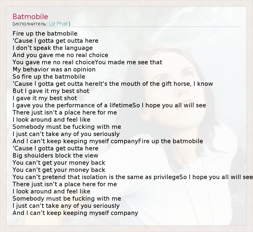 А как ты думаешь, о чем песня "Batmobile" ?