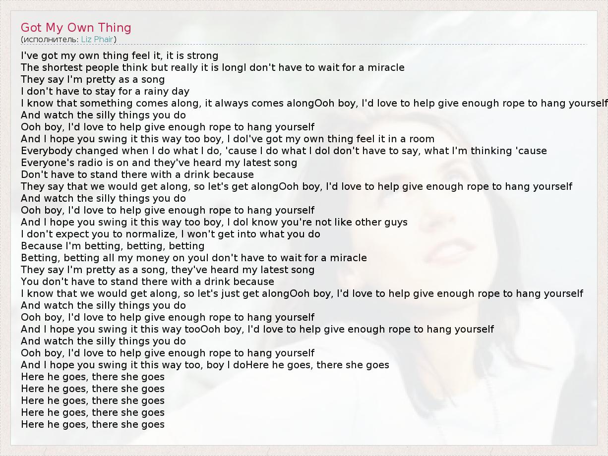 А как ты думаешь, о чем песня "Got My Own Thing" ?