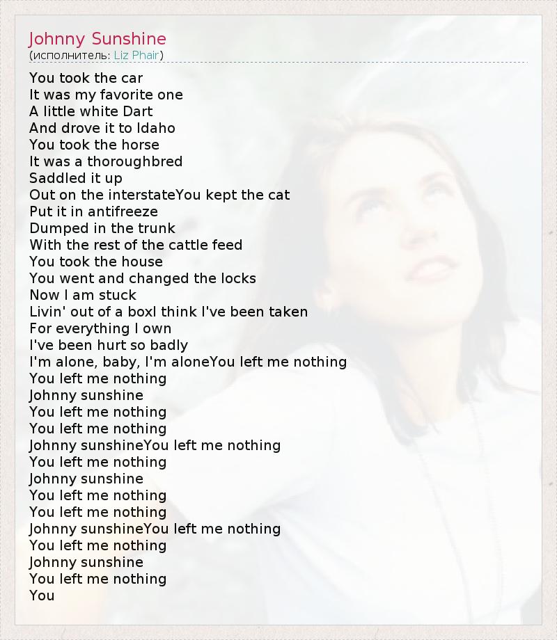 Johnny sunshineYou left me nothing