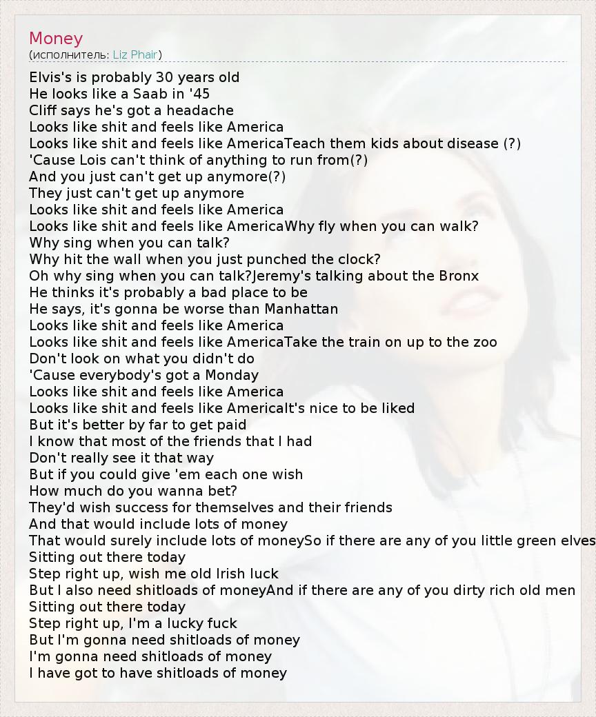А как ты думаешь, о чем песня "Money" ?