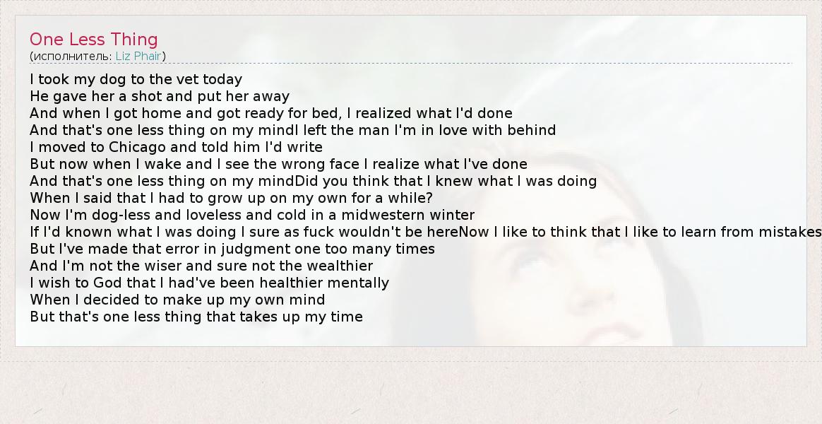 А как ты думаешь, о чем песня "One Less Thing" ?