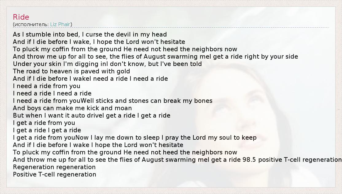 I get a ride from youNow I lay me down to sleep I pray the Lord my soul to keep