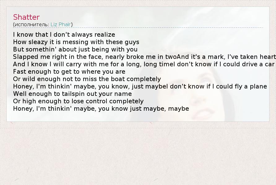 А как ты думаешь, о чем песня "Shatter" ?