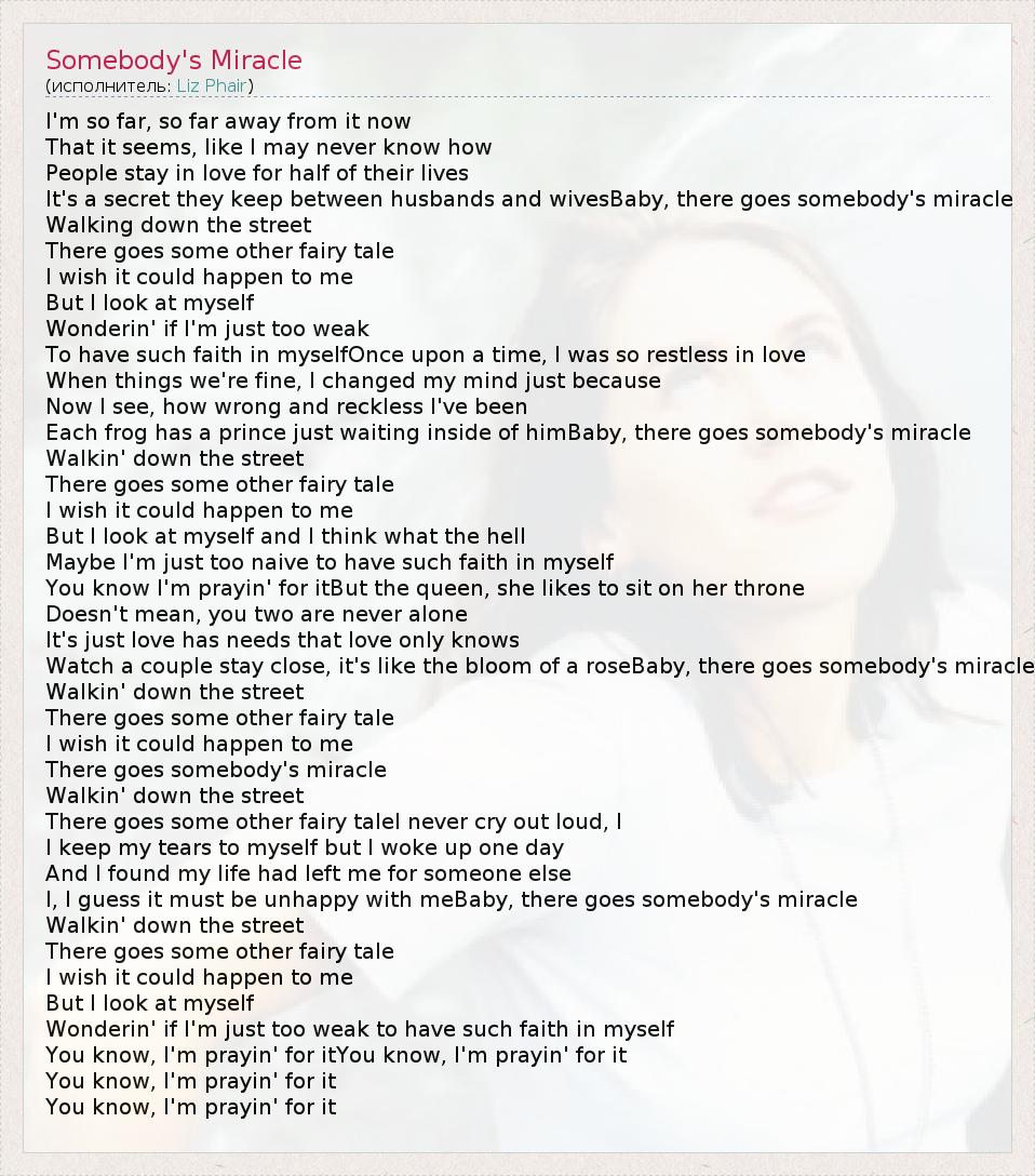 А как ты думаешь, о чем песня "Somebody's Miracle" ?