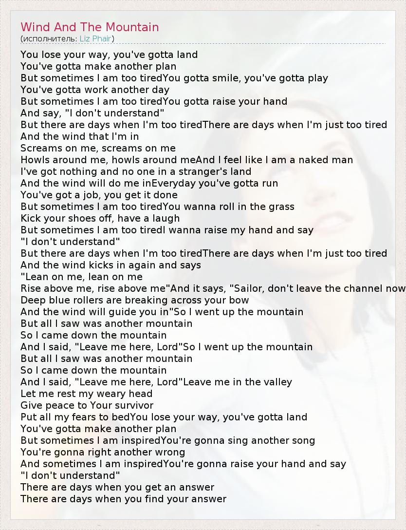 А как ты думаешь, о чем песня "Wind And The Mountain" ?