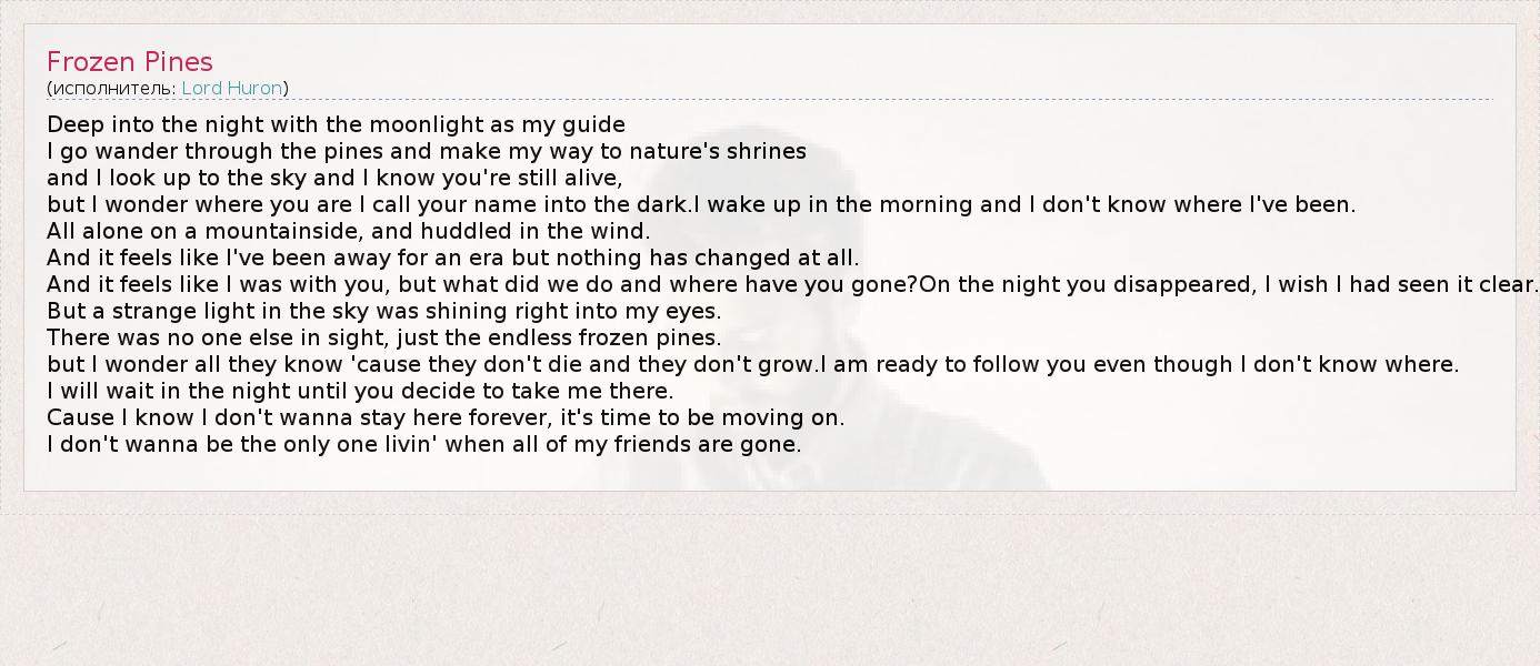 А как ты думаешь, о чем песня "Frozen Pines" ?