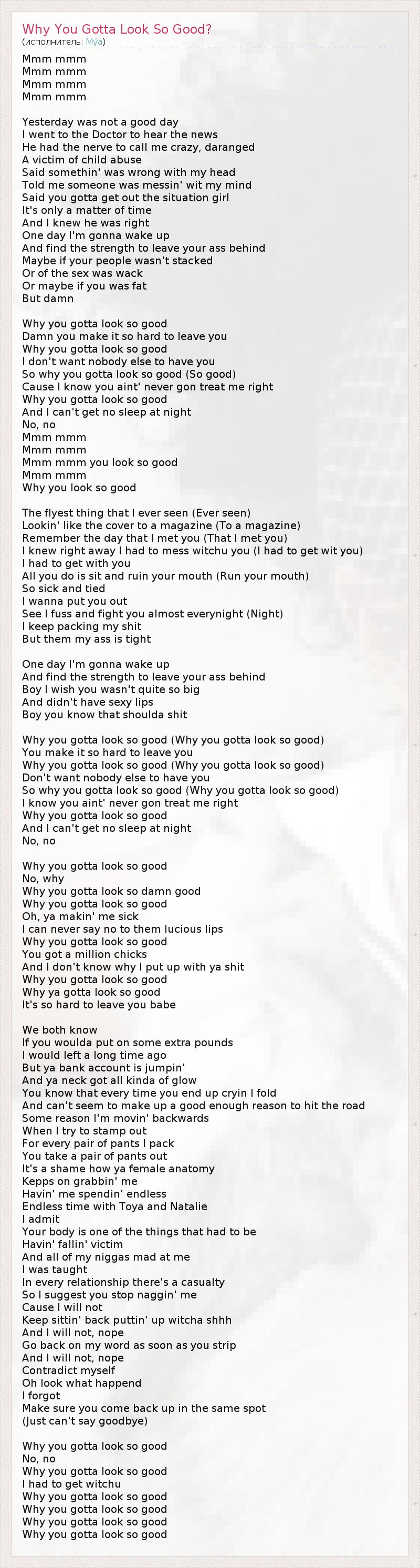 А как ты думаешь, о чем песня "Why You Gotta Look So Good?" ?