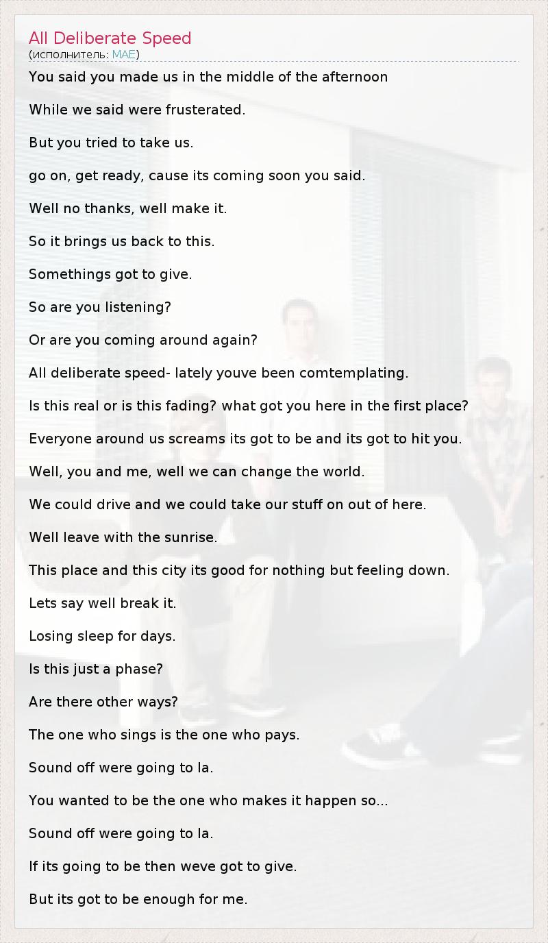 ГлавнаяИсполнителиMAEAll Deliberate Speed