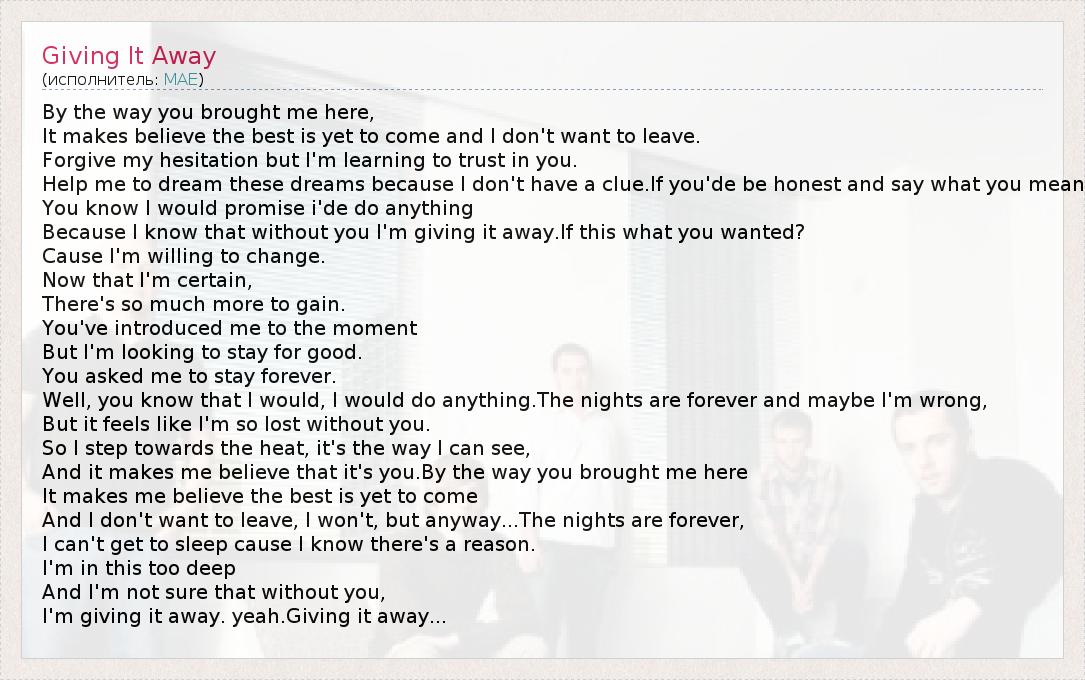 А как ты думаешь, о чем песня "Giving It Away" ?