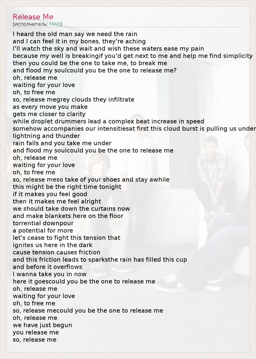 Это интересно:Группа "Mae" была образована в 2001-м в Норфолке (штат Виржиния). Название Mae - это аббревиатура Multisensory Aesthetic Experience, и эти “мульти-сенсорные эстеты” привнесли своих красок в квази-имо-ветку, выросшую на почве увядающего имо-рока.Почти все они были связаны с музыкой с самого детства. Иаков родился в семье хиппи (эстетских), и с раннего детства в их доме звучала музыка с утра до ночи. Зак... продолжение