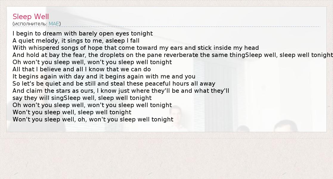 А как ты думаешь, о чем песня "Sleep Well" ?