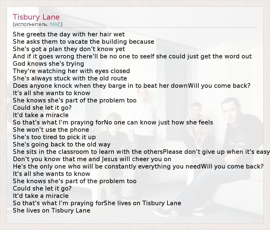 А как ты думаешь, о чем песня "Tisbury Lane" ?