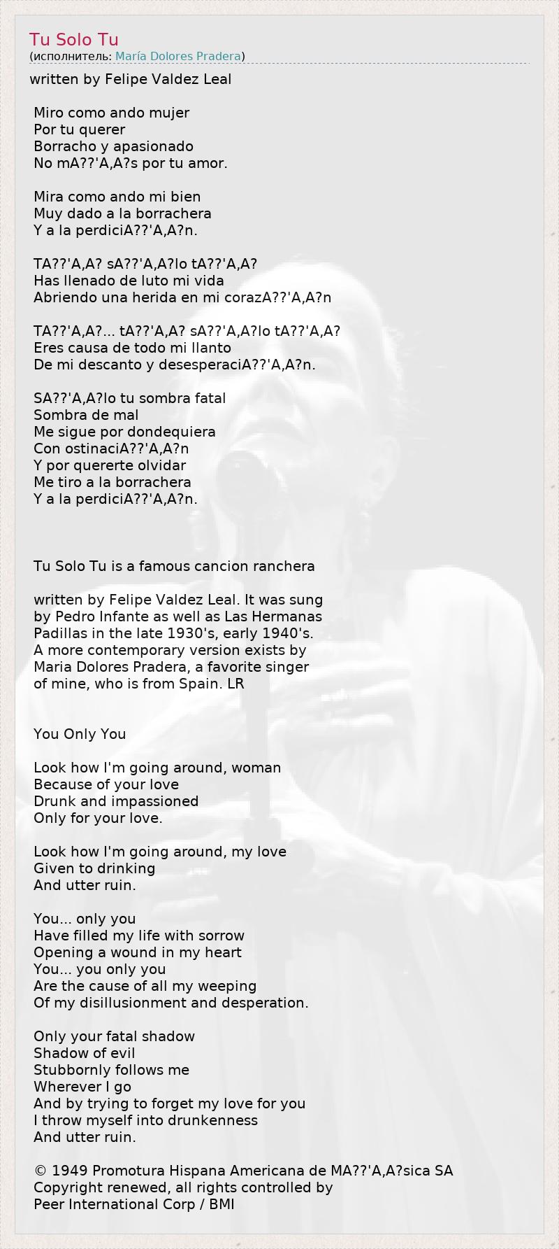 А как ты думаешь, о чем песня "Tu Solo Tu" ?