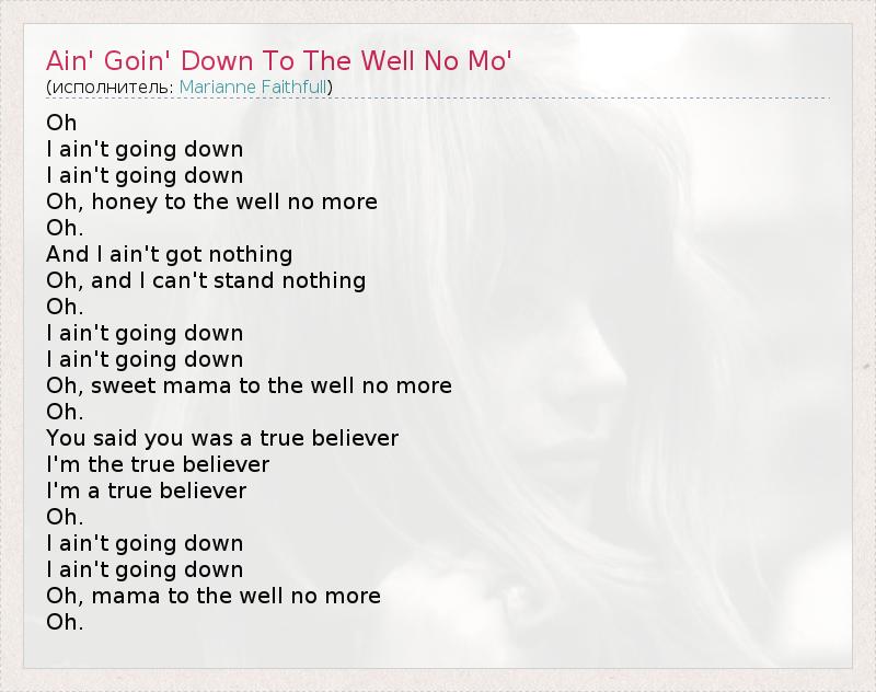ГлавнаяИсполнителиMarianne FaithfullAin' Goin' Down To The Well No Mo'