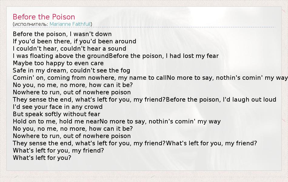 А как ты думаешь, о чем песня "Before the Poison" ?
