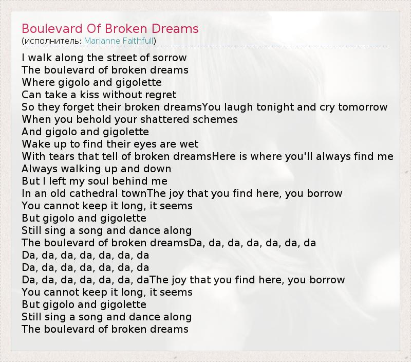 The boulevard of broken dreamsDa, da, da, da, da, da, da