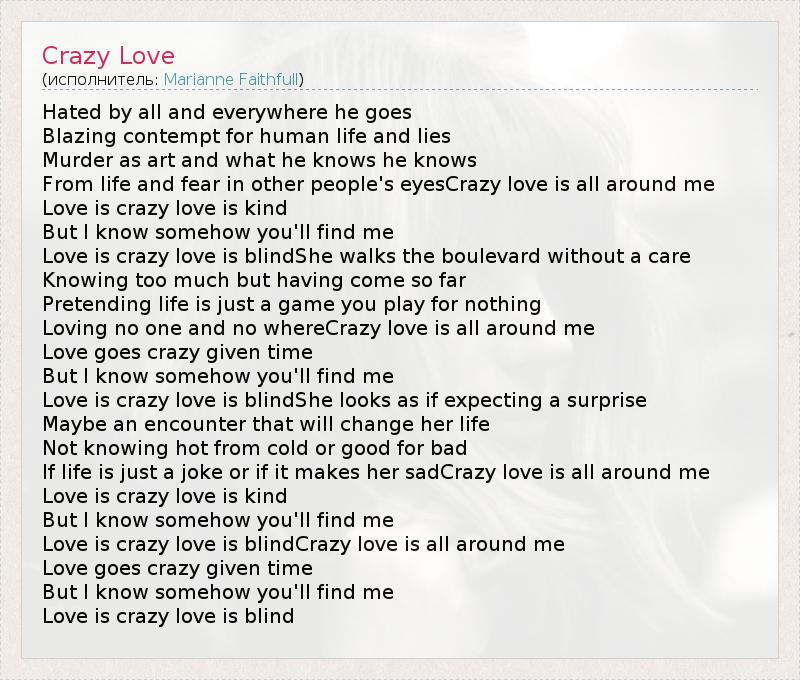 Love is crazy love is blindCrazy love is all around me