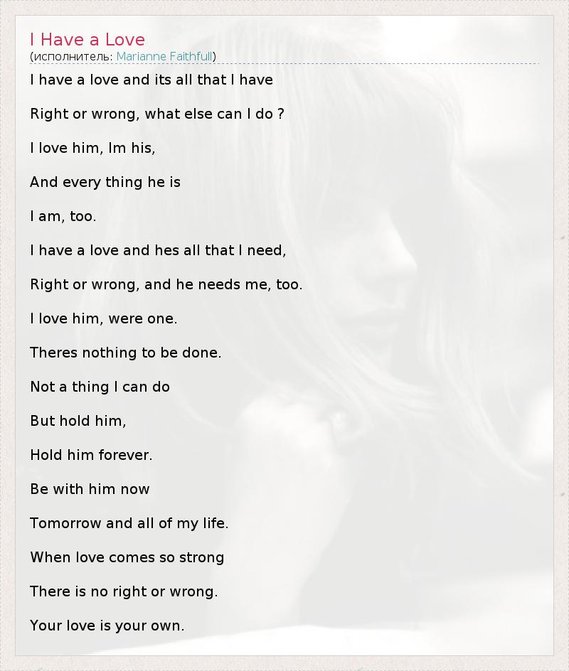 А как ты думаешь, о чем песня "I Have a Love" ?