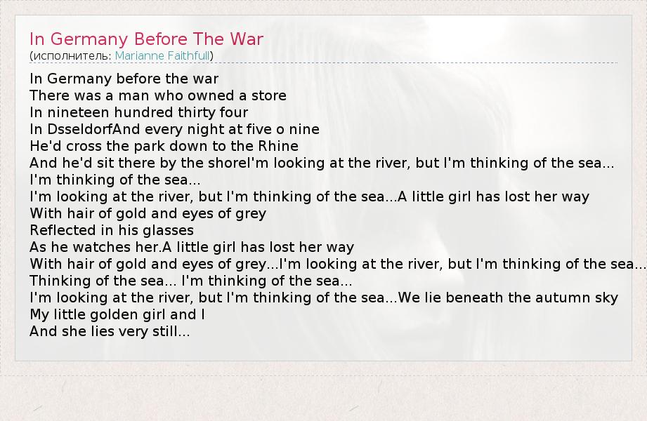 А как ты думаешь, о чем песня "In Germany Before The War" ?