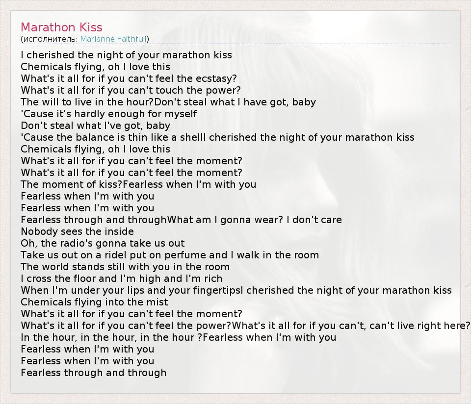 А как ты думаешь, о чем песня "Marathon Kiss" ?