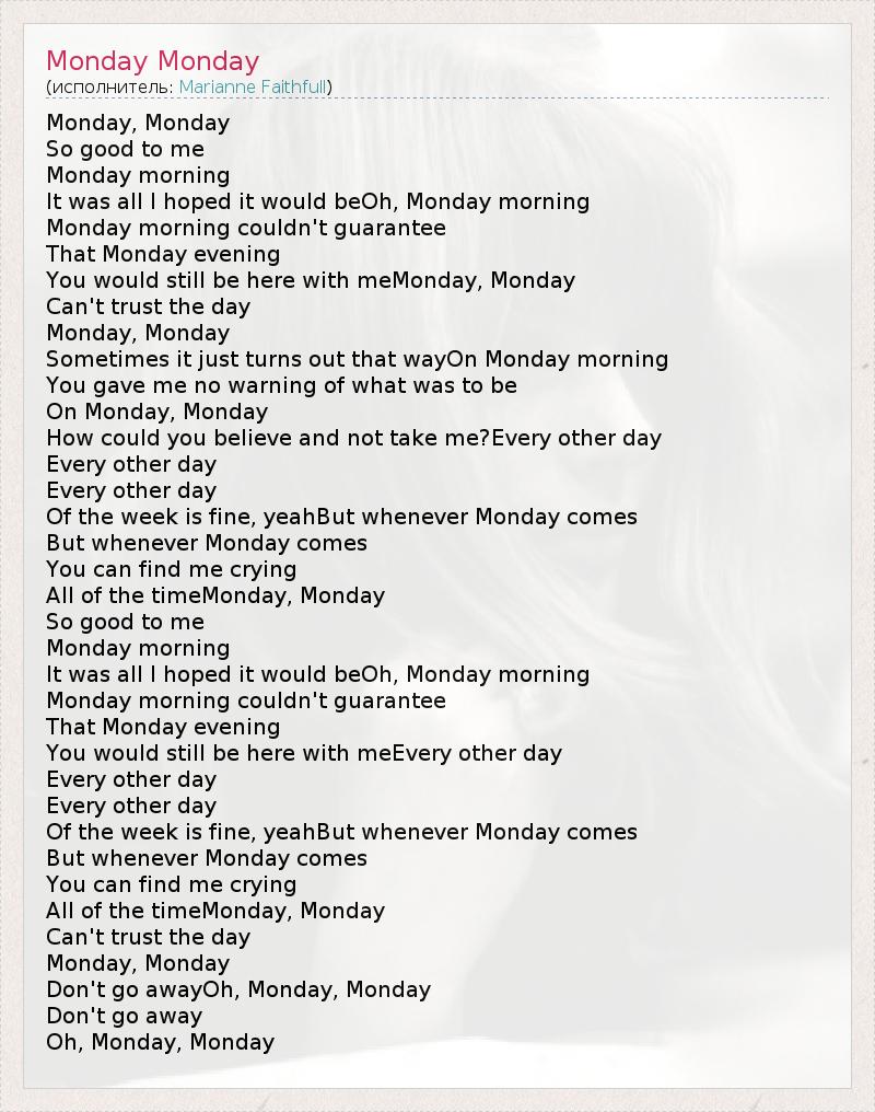 А как ты думаешь, о чем песня "Monday Monday" ?