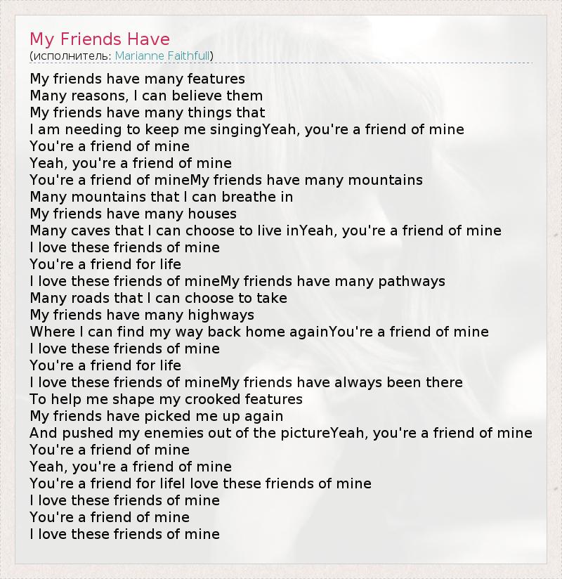 А как ты думаешь, о чем песня "My Friends Have" ?