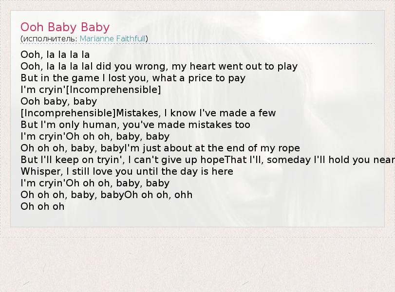 А как ты думаешь, о чем песня "Ooh Baby Baby" ?