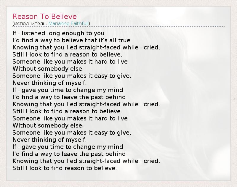 А как ты думаешь, о чем песня "Reason To Believe" ?