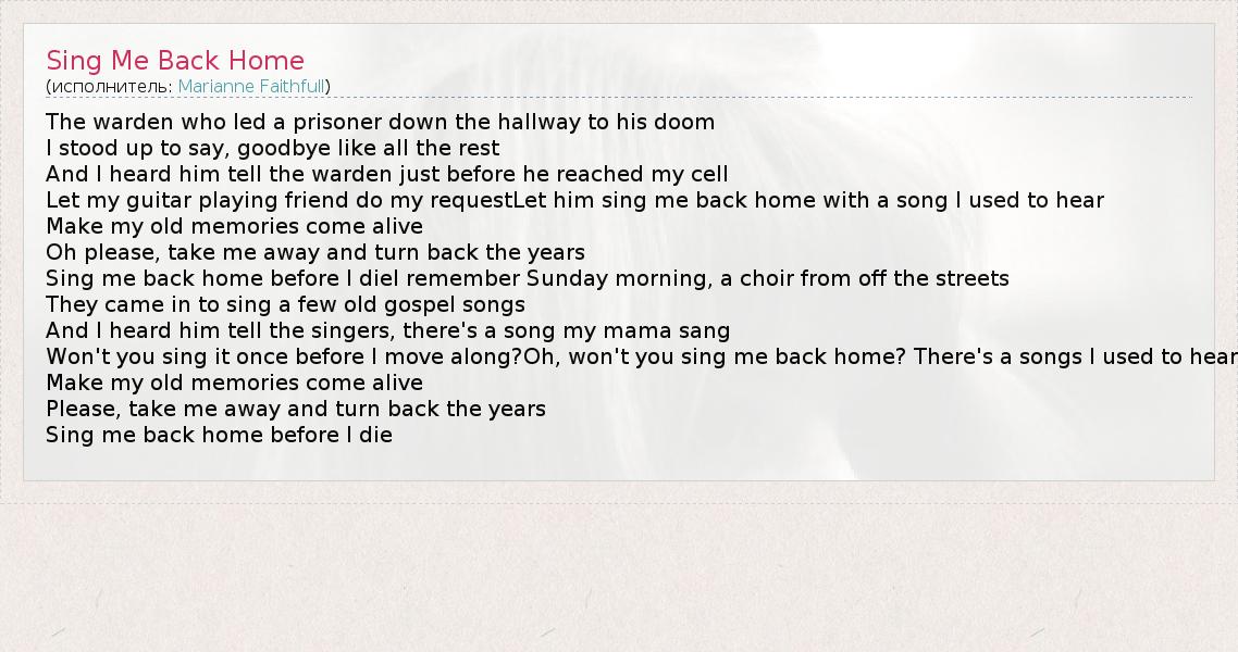 А как ты думаешь, о чем песня "Sing Me Back Home" ?