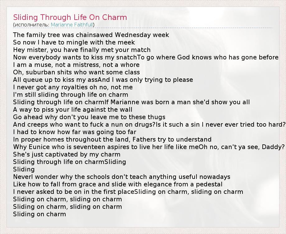 А как ты думаешь, о чем песня "Sliding Through Life On Charm" ?